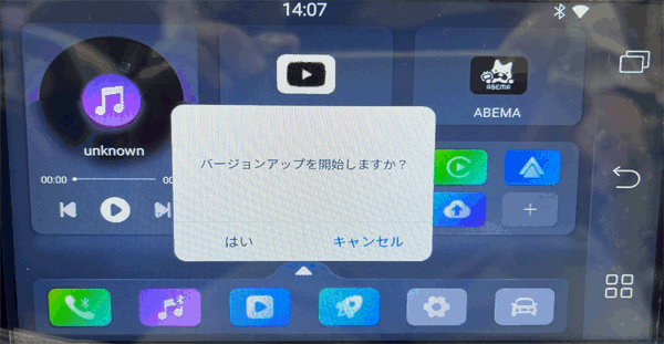 | 7.「バージョンアップを開始しますか?」のポップアップ表示がでたら「はい」をタップします。 | ![]() |
